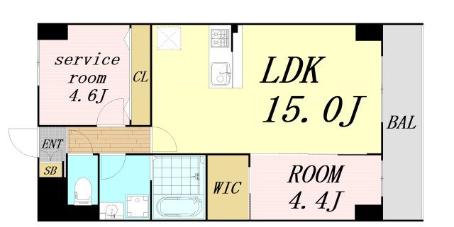 LDK 15.0帖/洋室 4.4帖/S 4.6帖 - 向き