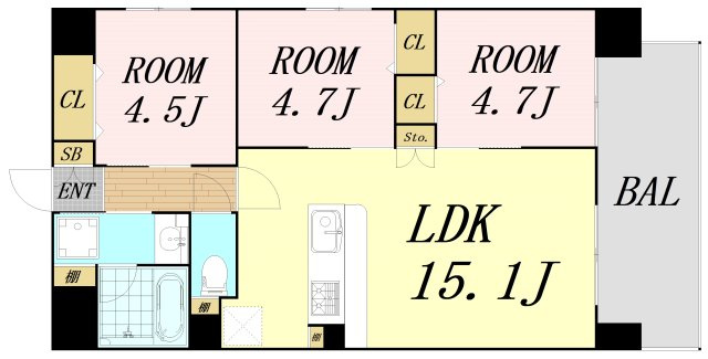 LDK 14.8帖/洋室 5.3帖/洋室 5.3帖/洋室 3.8帖