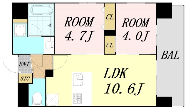 LDK 10.6帖/洋室 4.7帖/洋室 4.0帖 - 向き