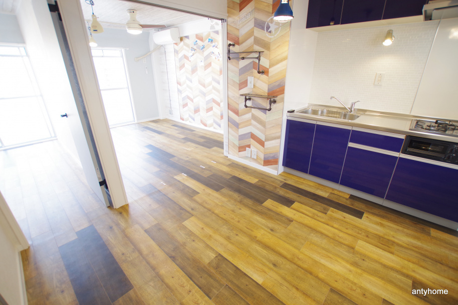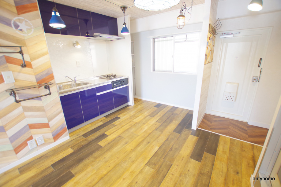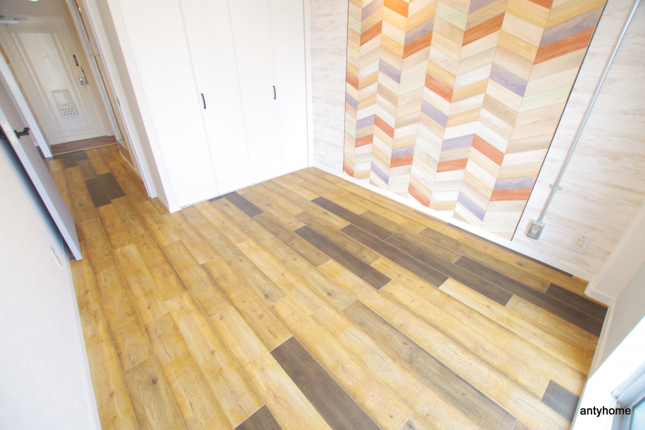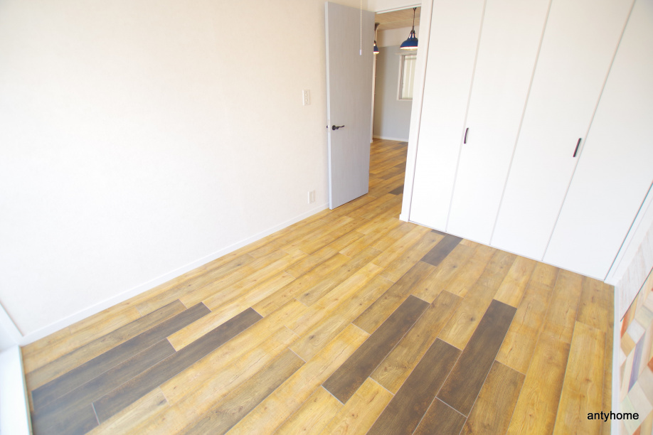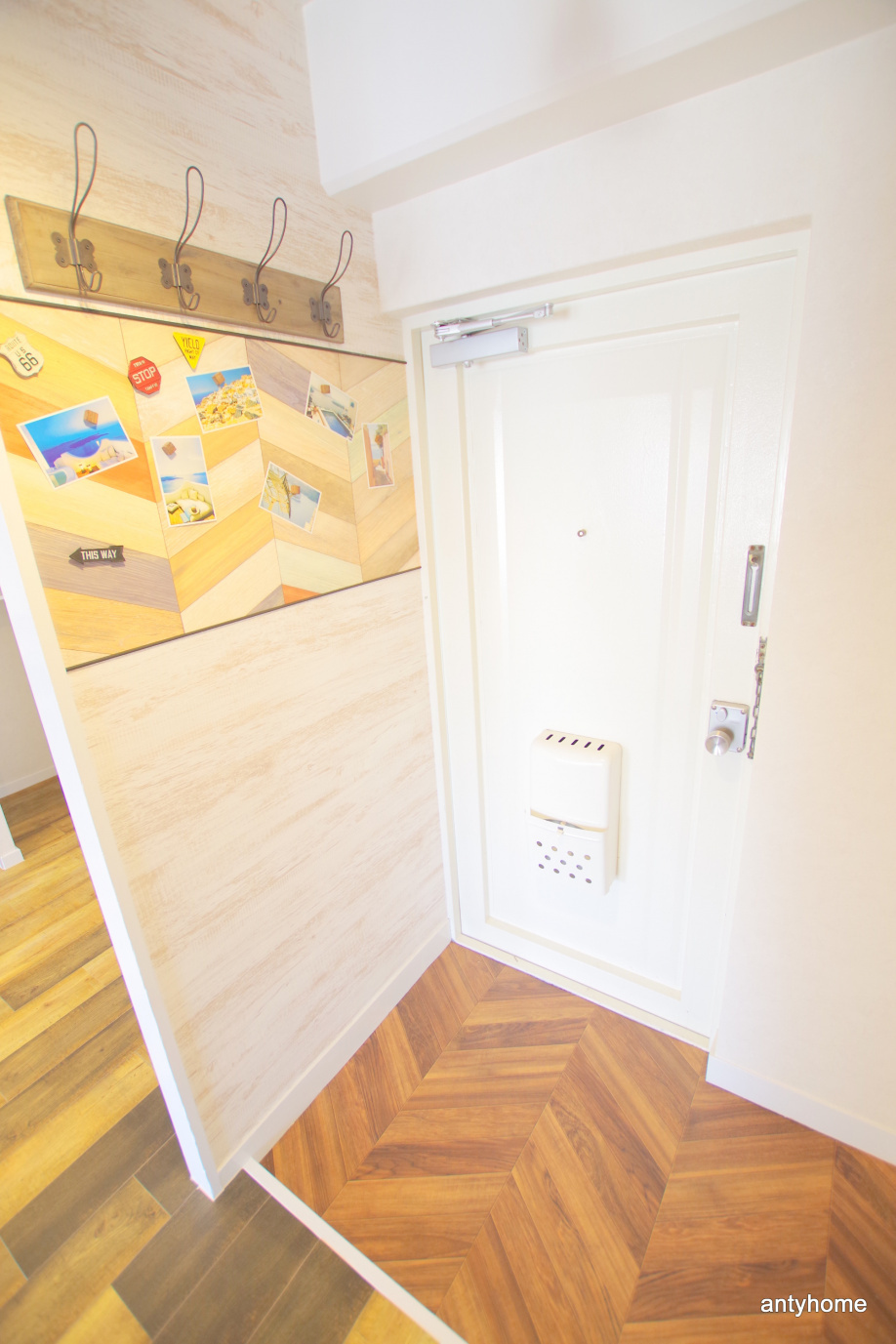 ドアはそのままに玄関の床や壁紙で個性が出ています!これはカリフォルニア感ですかね!行ったことないので分からないですが(・ω・)